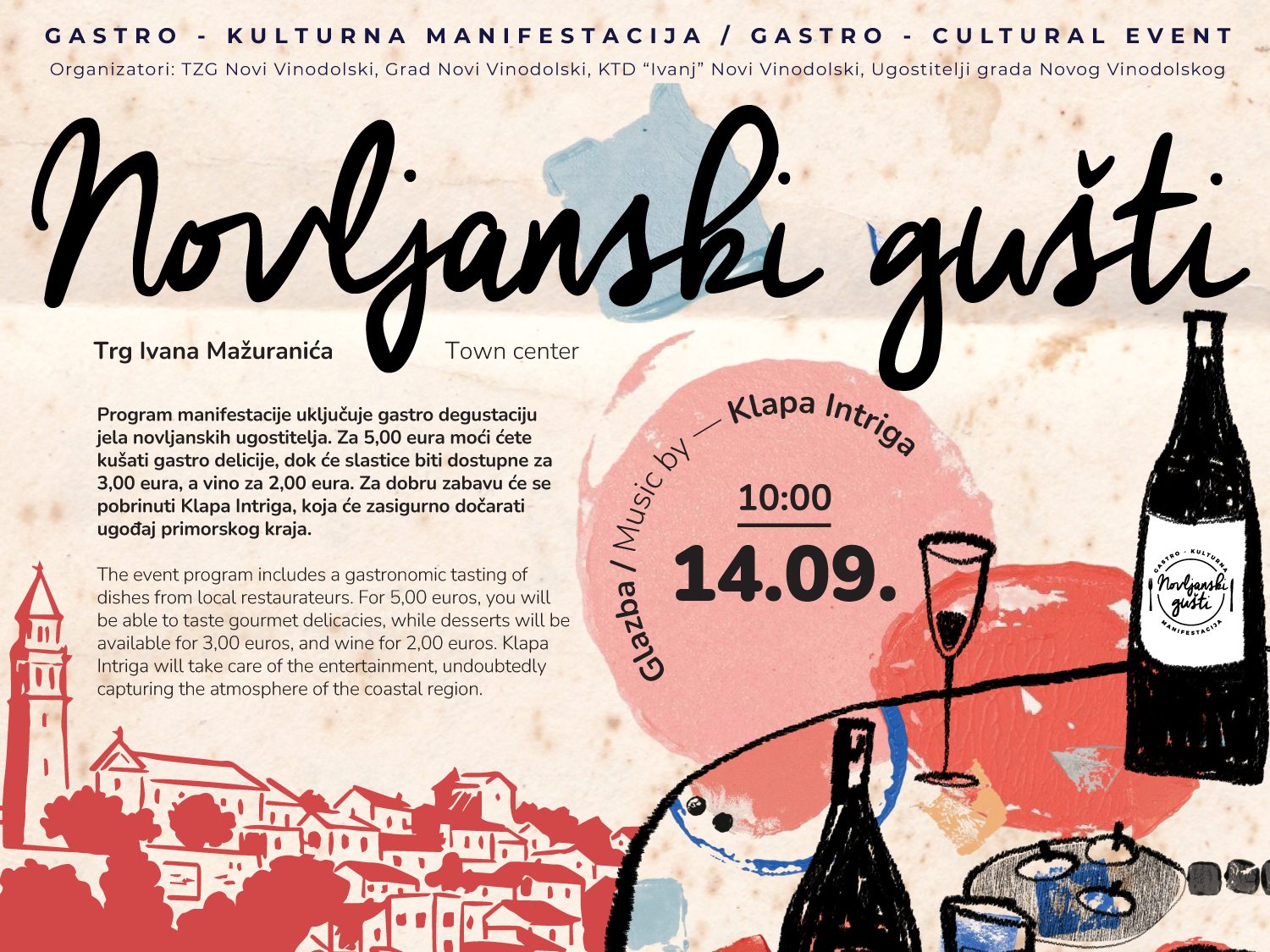 Veranstaltet wird das Event vom Tourismusverband der Stadt Novi Vinodolski, mit Unterstützung der Stadt und des KTD Ivanj sowie in Zusammenarbeit mit den lokalen Gastronomen. Eine Veranstaltung, die Jahr für Jahr alle Sinne verzaubert und den besten Geschmack unserer Region präsentiert.