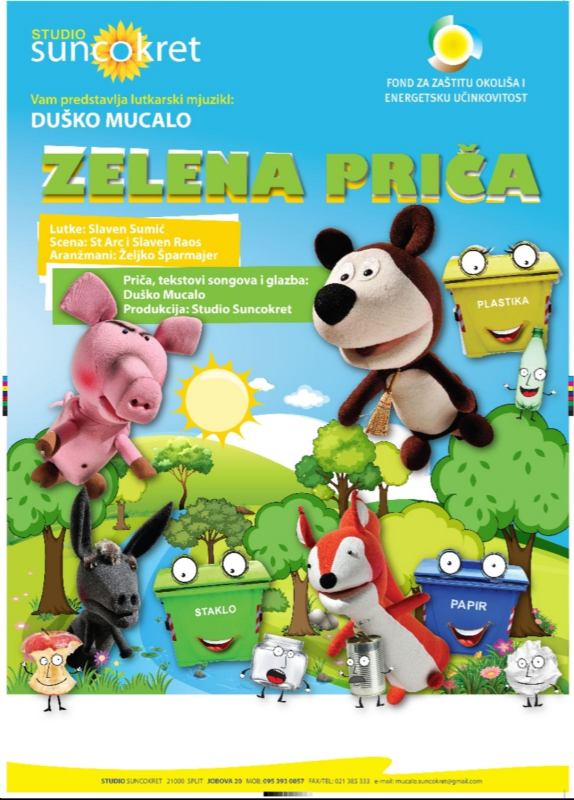Come proteggere l’ambiente? Come separare i rifiuti? Queste sono solo alcune delle domande a cui rispondono il netturbino Orso, la saggia Civetta, Gica Sporco, l’Asino, il Pesciolino, lo Scoiattolo e il Verme, protagonisti di questo musical ecologico di burattini. Nei loro habitat naturali i protagonisti incontrano diversi tipi di inquinamento. Mentre alcuni si divertono a creare disordine, altri cercano soluzioni per ridare all’ambiente il suo antico splendore. Durante lo spettacolo i bambini imparano in modo divertente e interattivo le basi della raccolta differenziata. Tra molte canzoni educative, il messaggio più importante di questo musical ecologico è: “Ci prendiamo cura dell’ambiente sin da piccoli.”